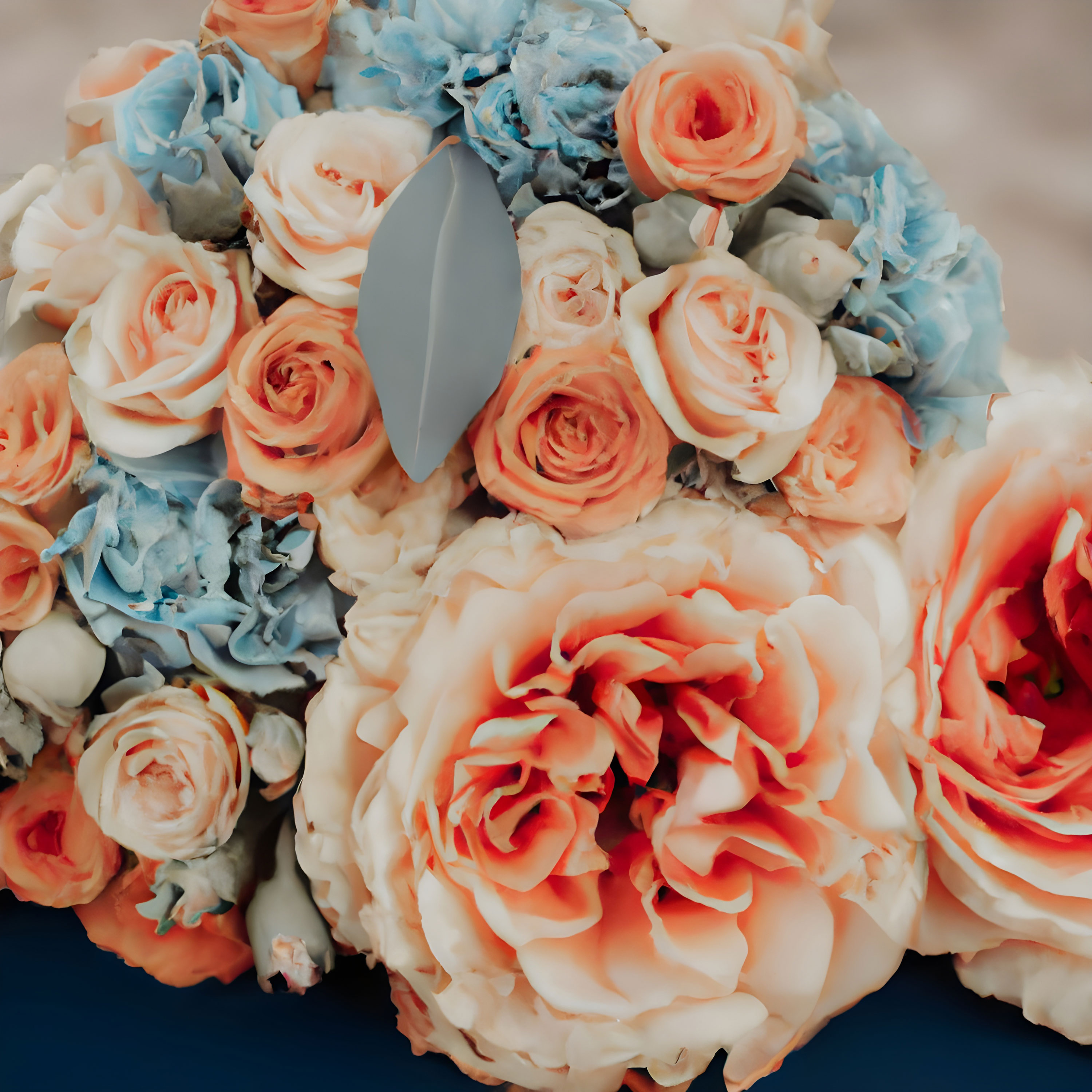 The range of blues that you can use with peach is quite vast – from dusty blues to navy blues to sky blues. With careful selection, you can create a unique look that will make your wedding stand out from the crowd.