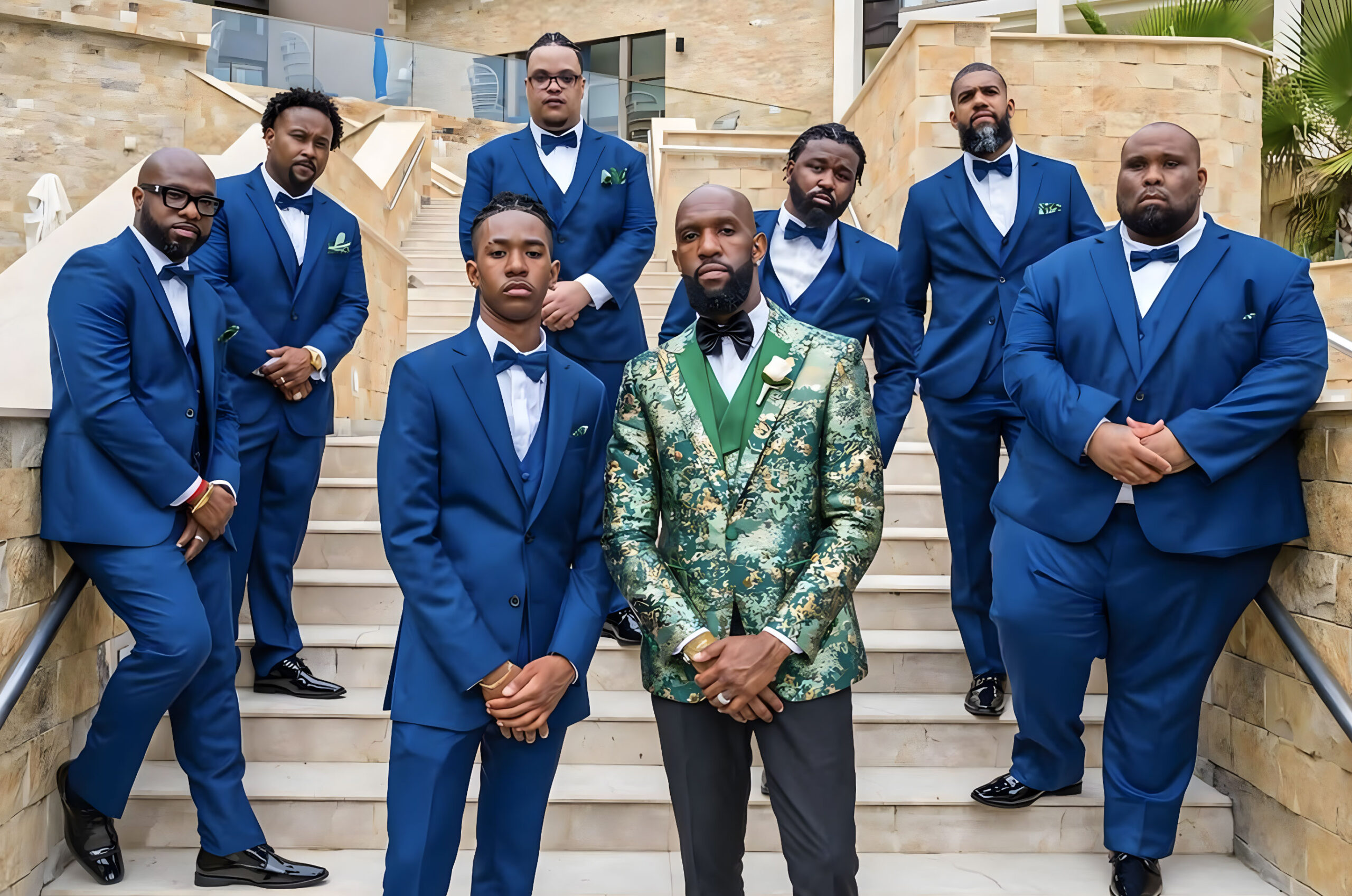 An elegant choice for your groom or groomsmen, look no further than gold tuxedos. Gold wedding suits are perfect for any season of the year. They are attire that is fit for a king and elevates your wedding day above and beyond. Pairing gold with black is a classic combination however, more contemporary combinations include gold with burgundy, royal blue and even purple or green.