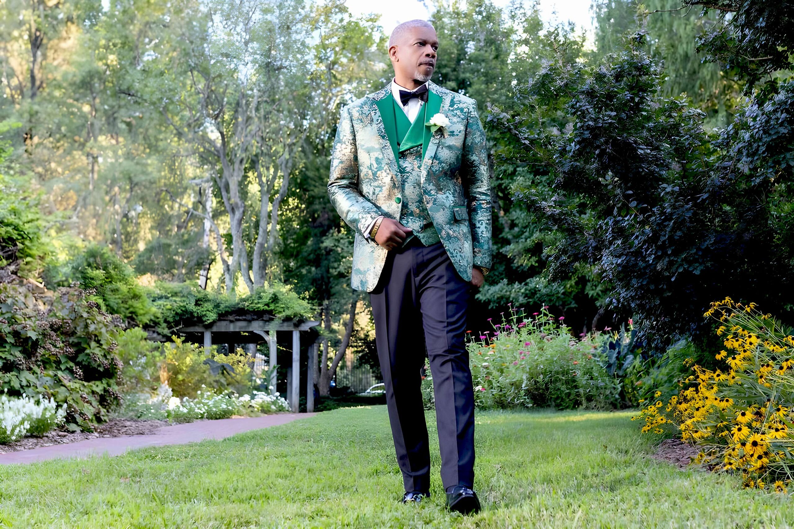 No matter if you are having an extravagant soiree or something a bit more understated, doing it in a men’s gold suit will exude sophistication and class. Wedding suits in gold are refined and luxurious, especially when done in a lavish fabric like velvet or satin. Indulge in some opulence for your wedding day and do it in style.