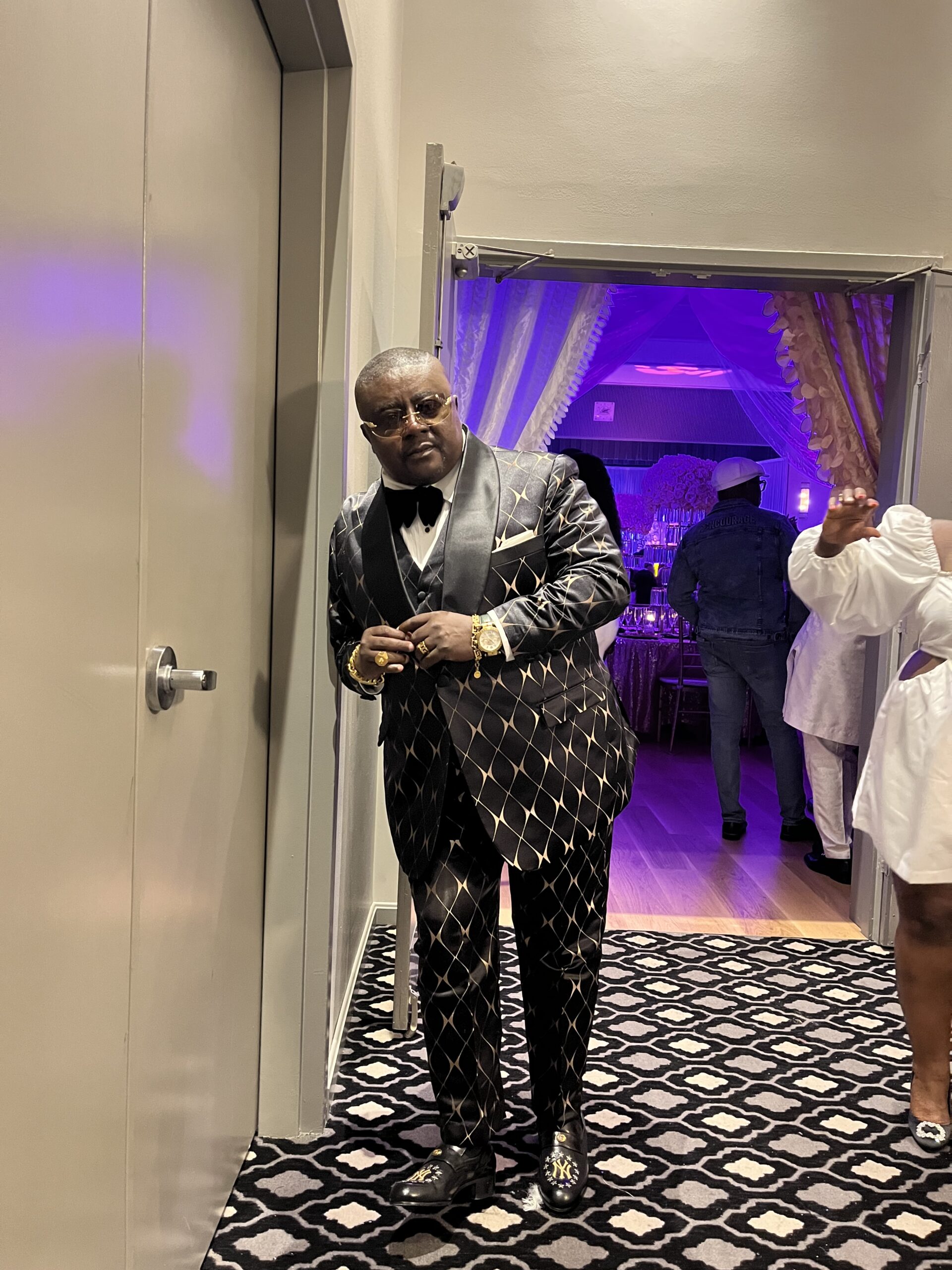 Making a lasting impression at any formal event is easy with this distinguished and modern outfit. Take your wardrobe to the next level when you add the diamond chain link black and rose gold tuxedo to your collection.
