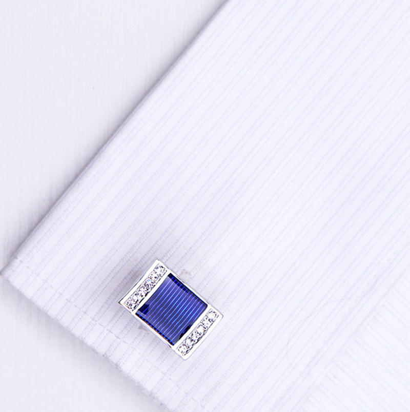 These cufflinks feature a subtle, yet tasteful style with the lovely blue hues in the center flanked by rows of glittering crystals on either side. They give off a luxurious shine thanks to premium quality silver plating.