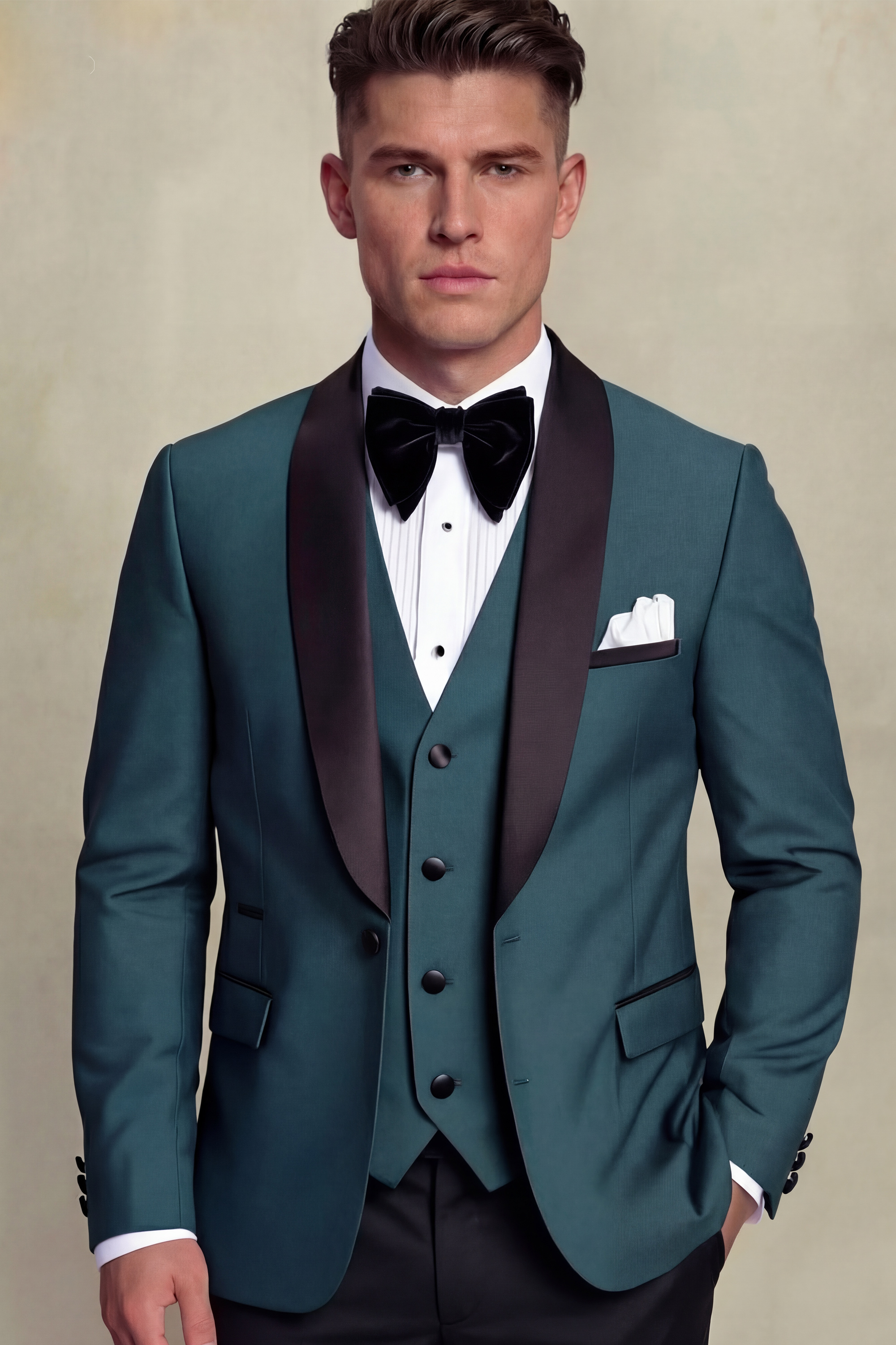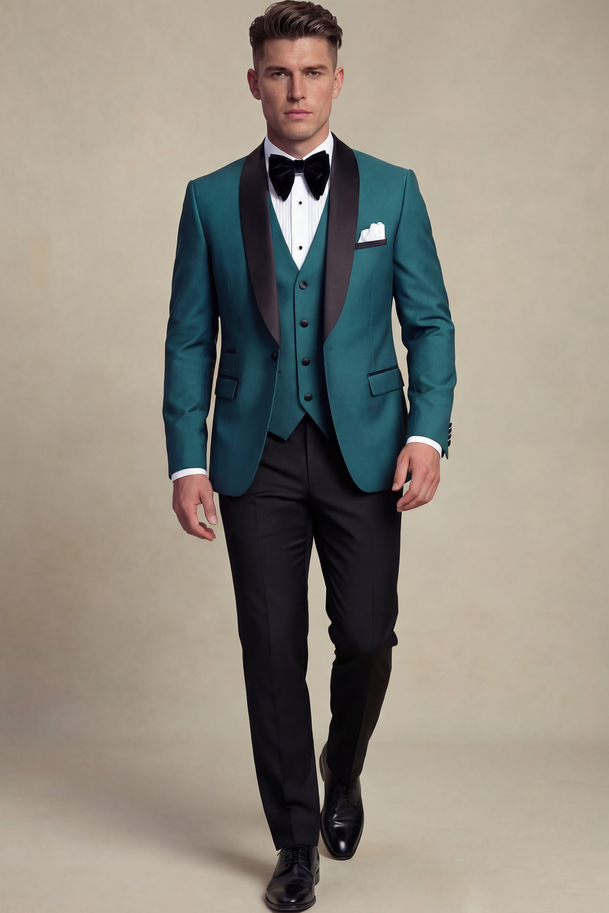 Presenting The Gentleman’s Guru Modern Teal Tuxedo Suit – 3 Piece, a sophisticated interpretation of contemporary formalwear crafted for the gentleman who seeks distinction through refined color and impeccable tailoring. This tuxedo strikes the perfect balance between modern elegance and timeless structure, making it an exceptional choice for elevated formal occasions.