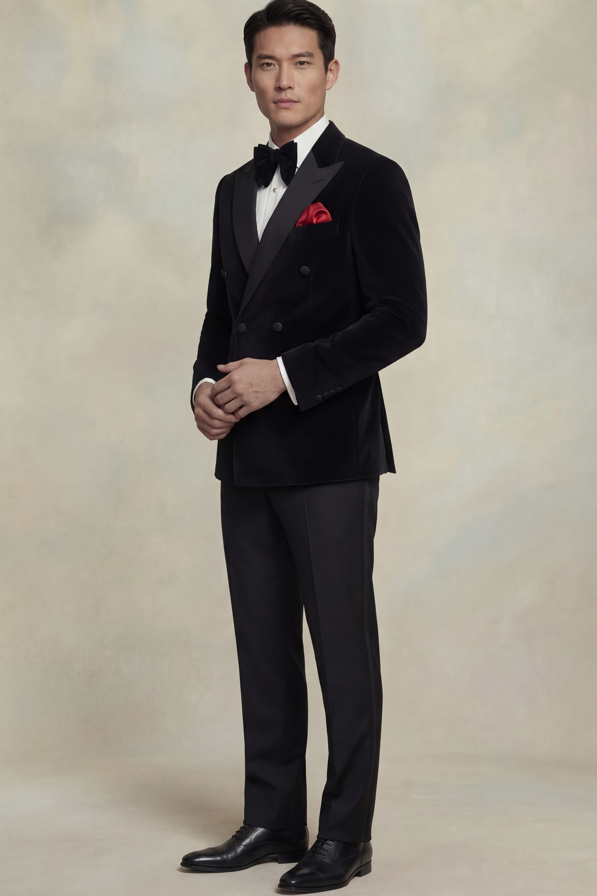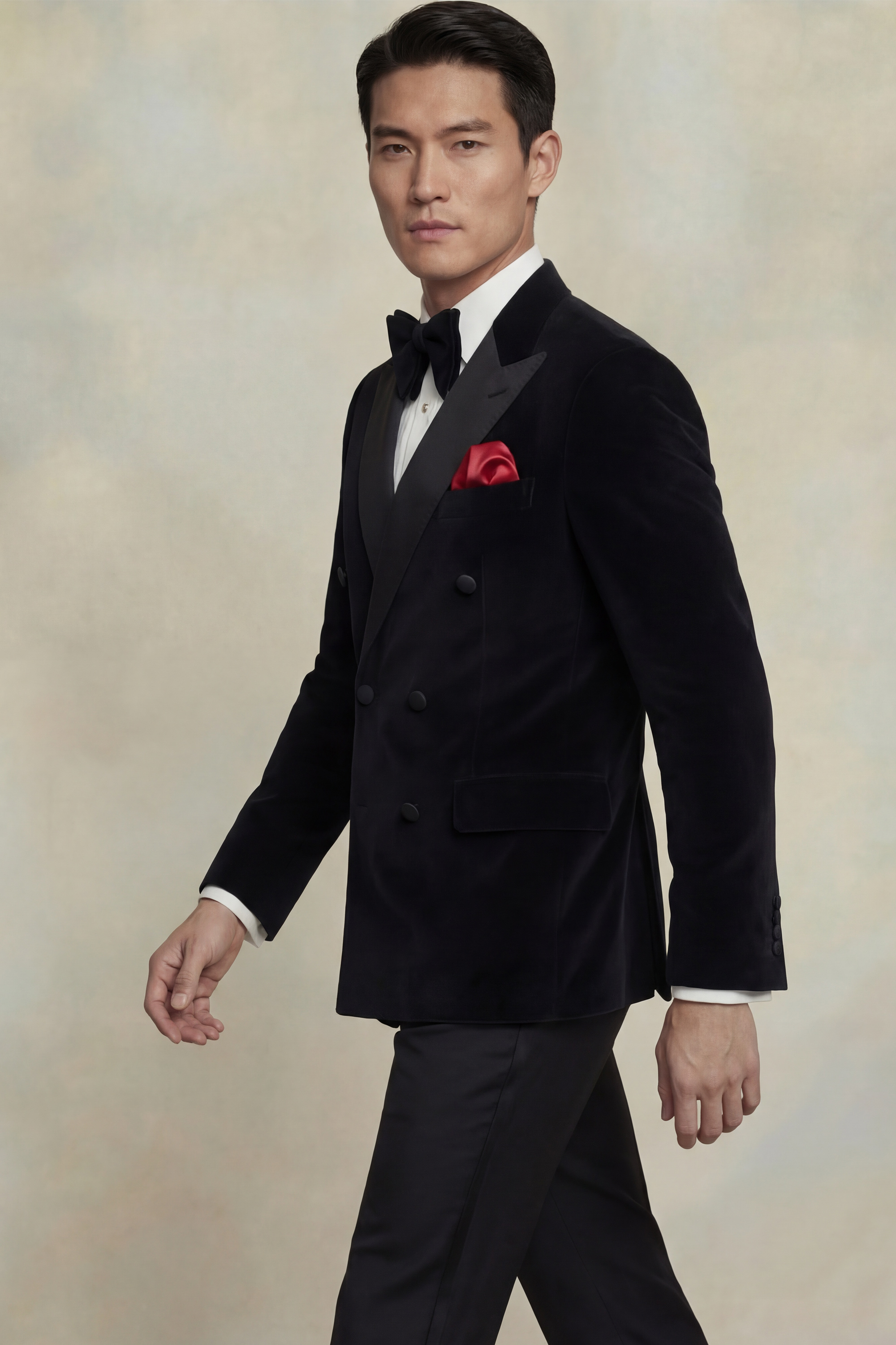 Crafted from sumptuous 100% cotton velvet, the Double-Breasted Black Tuxedo Jacket offers a luxuriously soft and velvety texture that exudes extravagance and ensures a comfortable wearing experience. The plush velvet fabric adds depth and dimension to your attire, creating an aura of sophistication that is sure to capture attention.