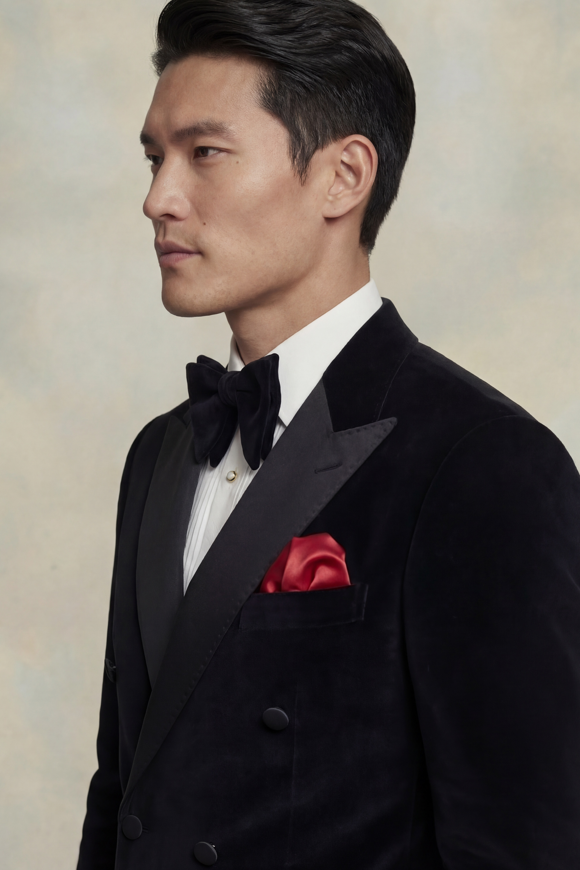 In summary, The Gentleman’s Guru Double Breasted Black Velvet Tuxedo Jacket is a masterpiece that seamlessly merges timeless design with modern sensibilities. With its slim-fit cut, double-breasted closure, wide peak collar, and rich cotton velvet fabric, this jacket embodies the essence of refined style and unparalleled luxury. Elevate your formal ensemble to new heights by choosing The Gentleman’s Guru and embracing the epitome of sartorial excellence.