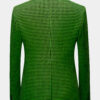 Finished with the Gentleman’s Guru’s signature crimson stitches, this tuxedo is half-canvassed for greater versatility and comfort. The jacket and vest are fully lined and handcrafted with a blend of wool cotton, linen, and polyester for greater durability, ensuring you look your best for any special occasion. The tuxedo comes with a matching pair of pants or a solid black option, providing a versatile and sophisticated look. Choose The Gentleman’s Guru Green Houndstooth Tuxedo for a standout appearance and timeless style.