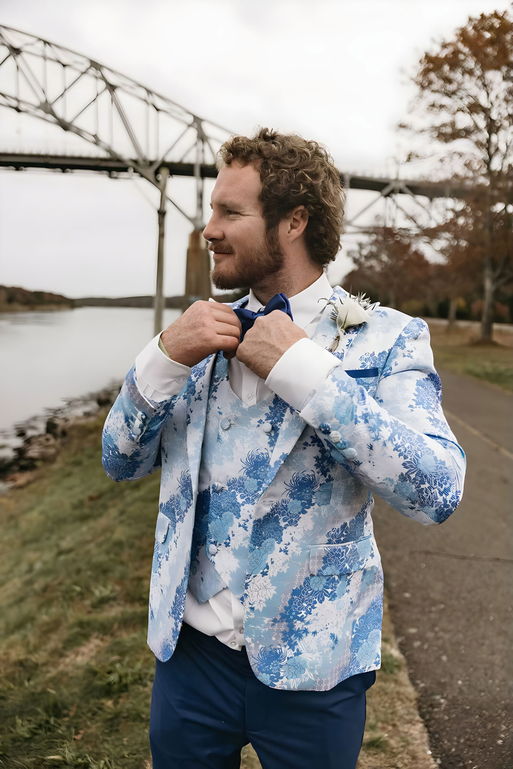 Making a lasting impression at any formal event is easy with this distinguished and timeless outfit. Up your wardrobe game to the next level when you add the stylish light blue floral suit to your collection.