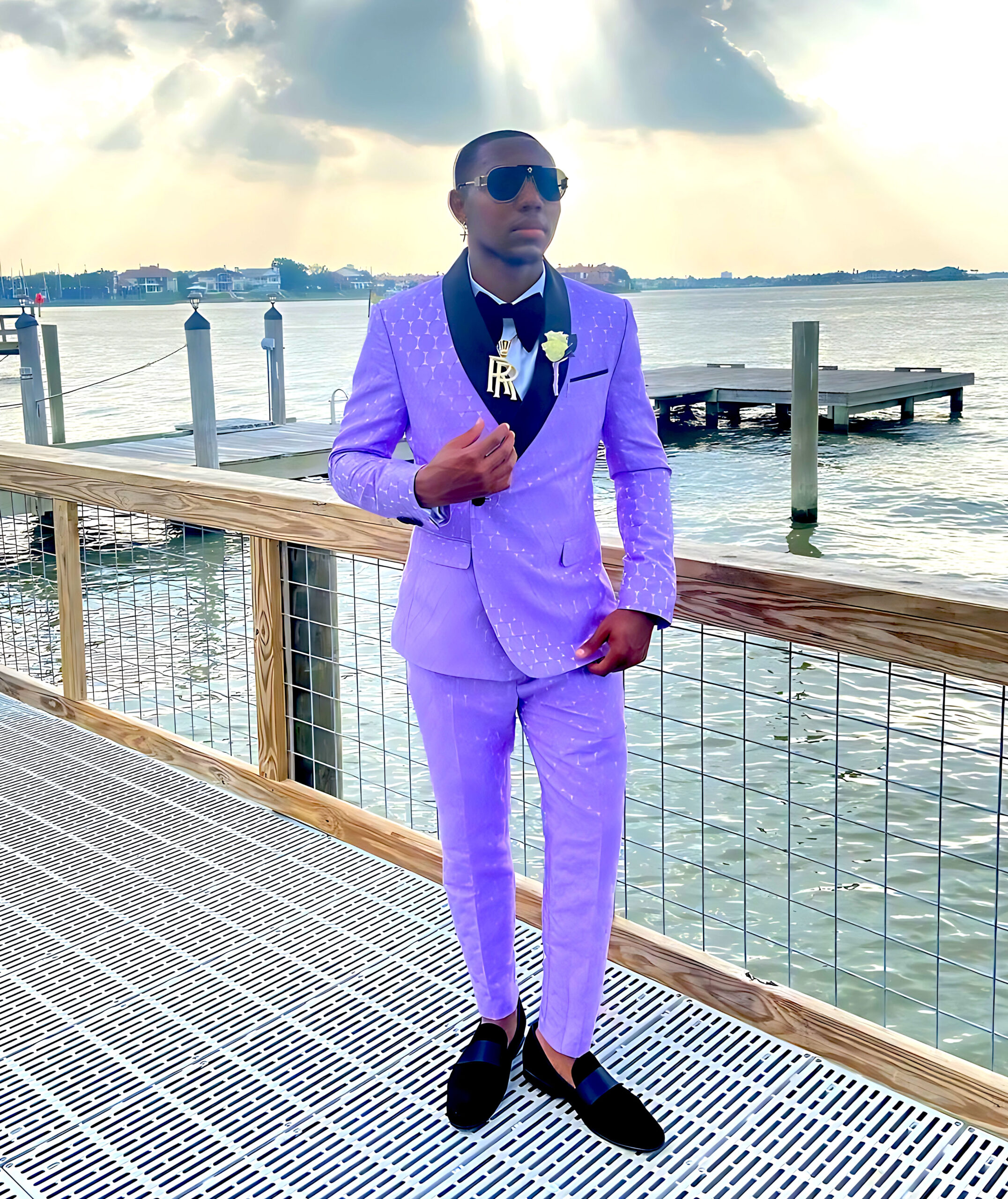 Making a lasting impression at your next formal affair is easy with this distinguished and stylish tuxedo. Up your wardrobe game to the next level when you add the polka dot lilac tuxedo suit to your collection.