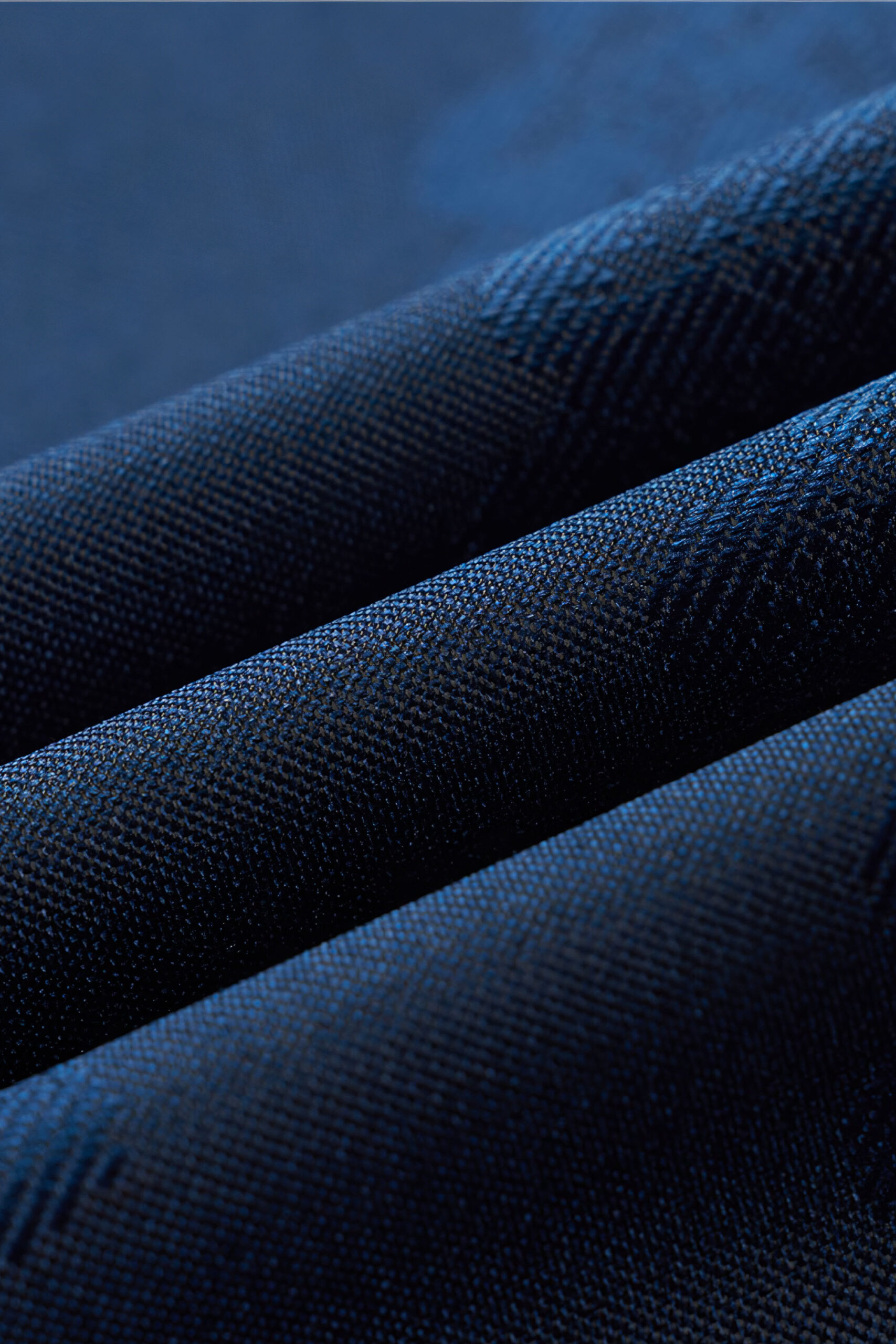 The fabric consists of a captivating vintage floral pattern in navy blue hues on a dark blue backdrop, adding a touch of timeless allure to the double-breasted suit. This unique and stylish design captures your attention while reflecting your distinctive sense of style and appreciation for exquisite craftsmanship.