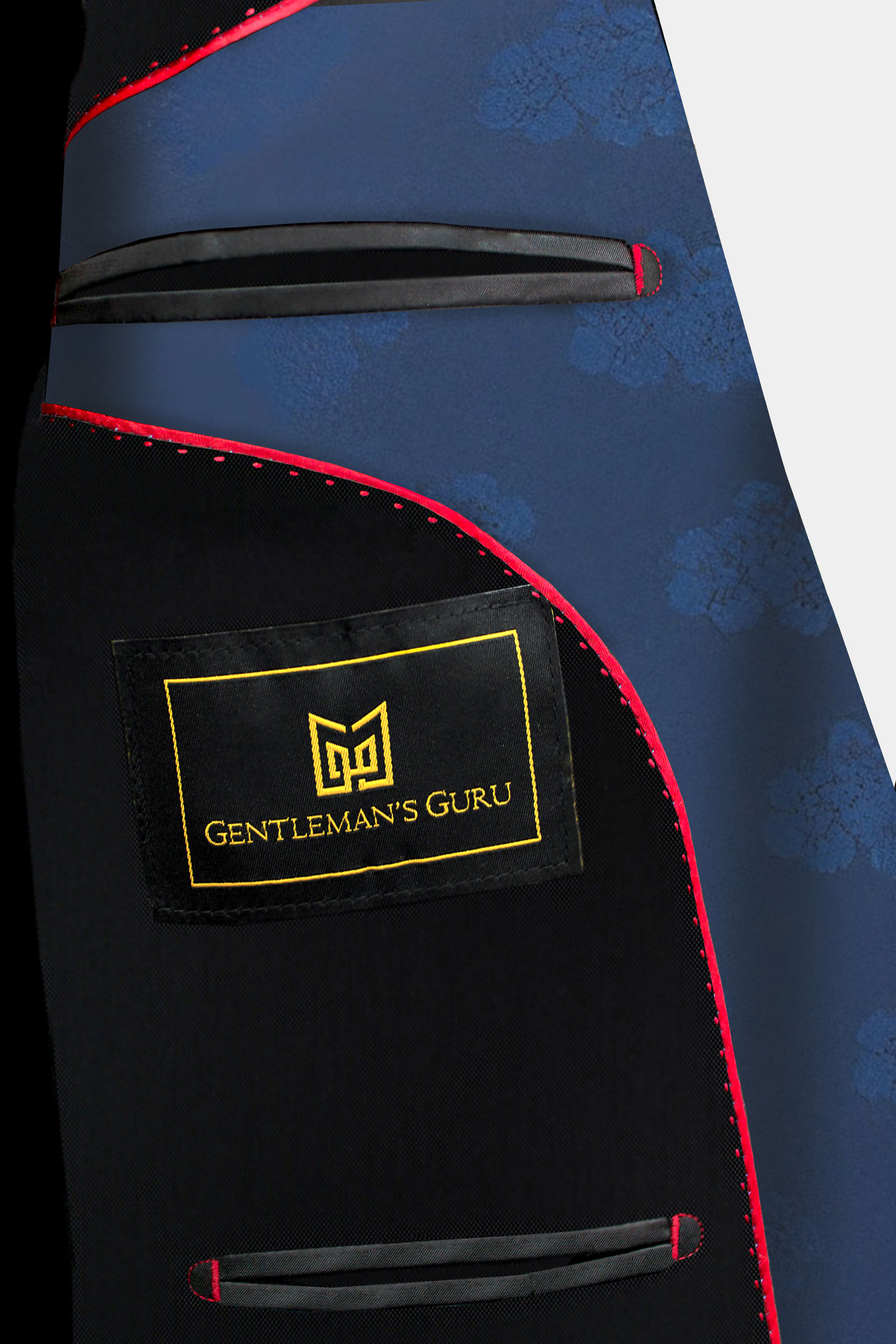 The 2 Piece Floral Double Breasted Men’s Dark Blue Suit comes complete with matching pants that perfectly complement the jacket. Additionally, we offer a solid black pants option, providing you with the flexibility to create different looks and styles effortlessly.