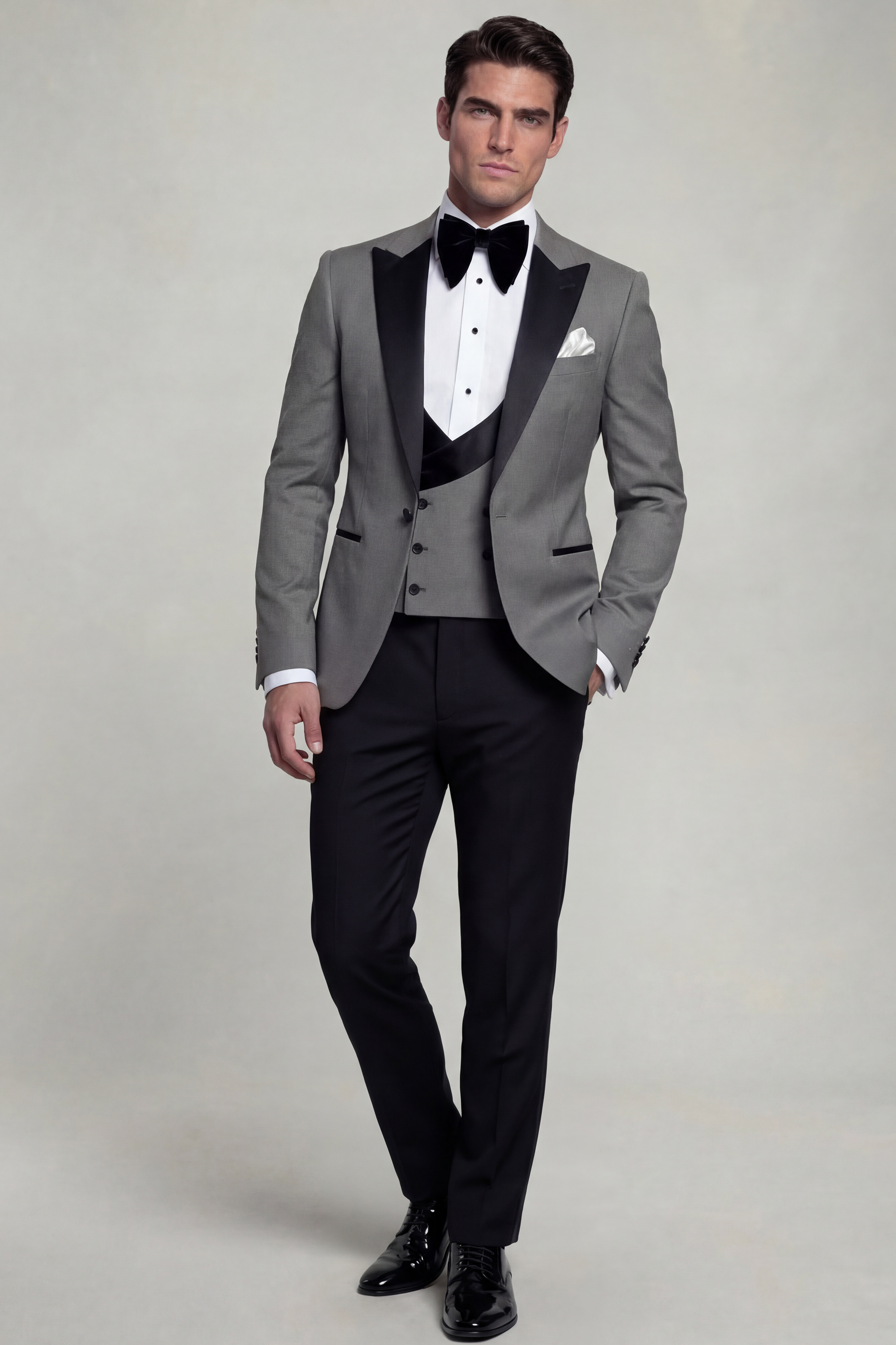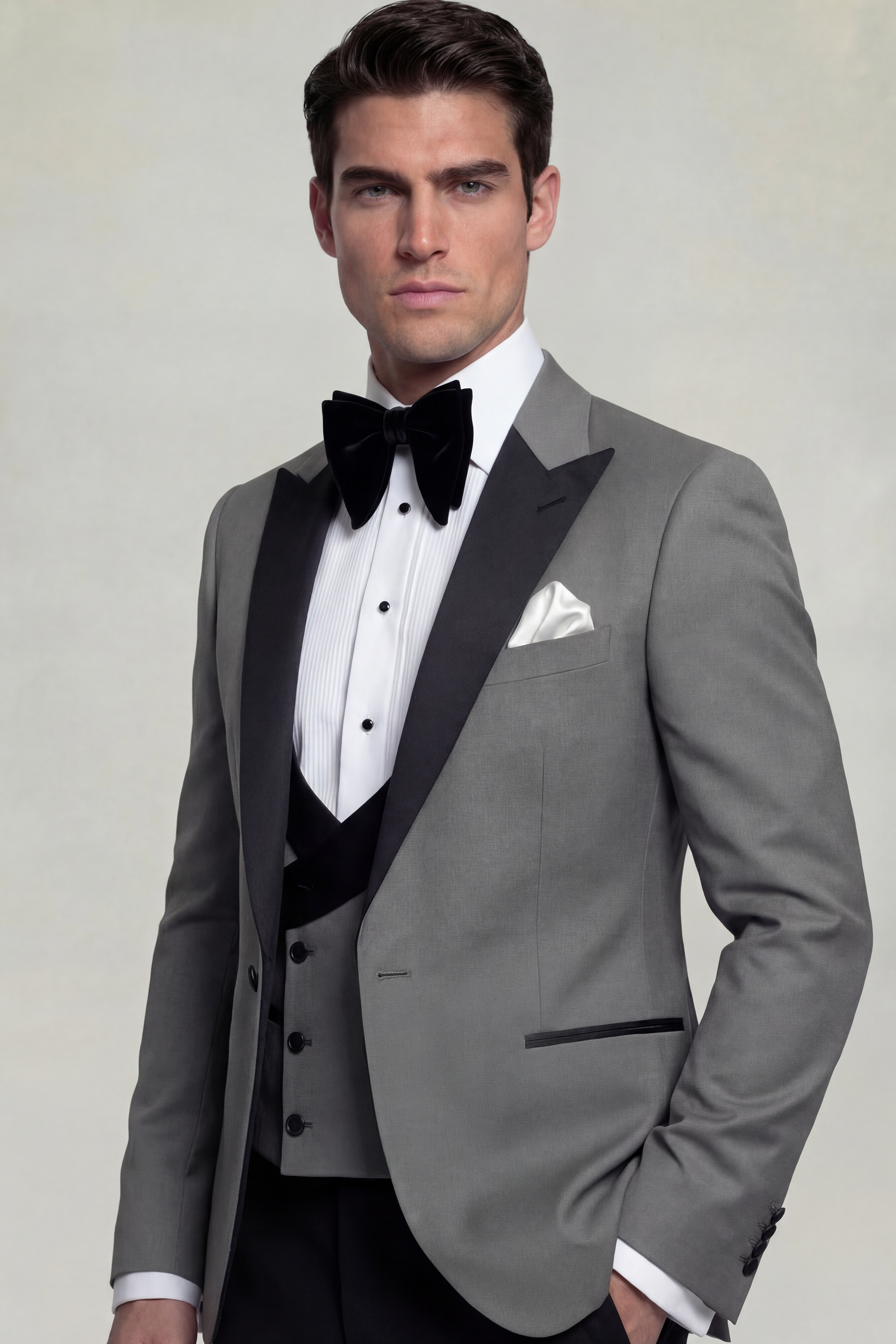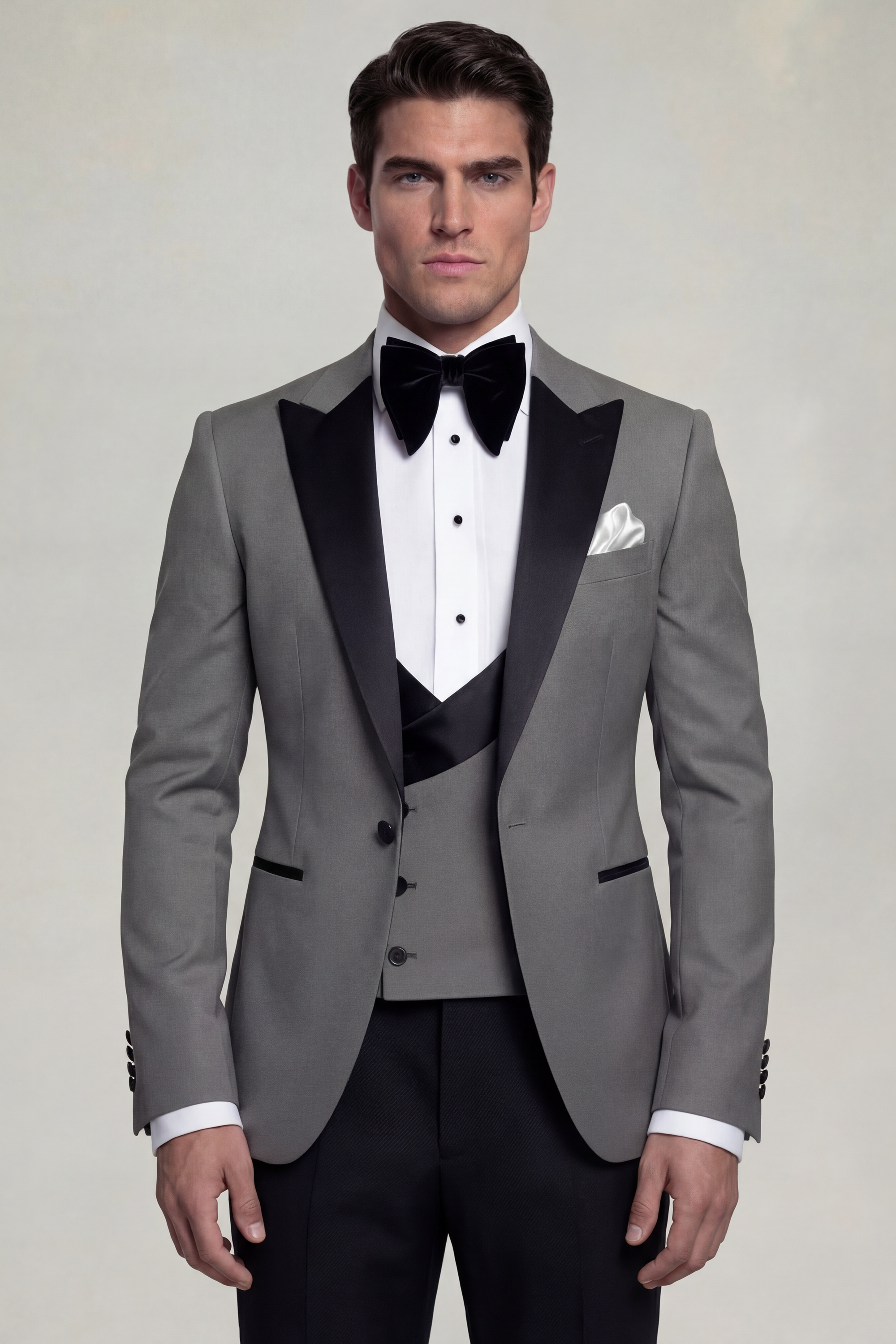 Modern Grey Peak Lapel Tuxedo – 3 Piece