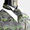 Take your formal, semi-formal, or special occasion attire to the next level when you add this striking paisley olive green vest and tie set to your wardrobe.