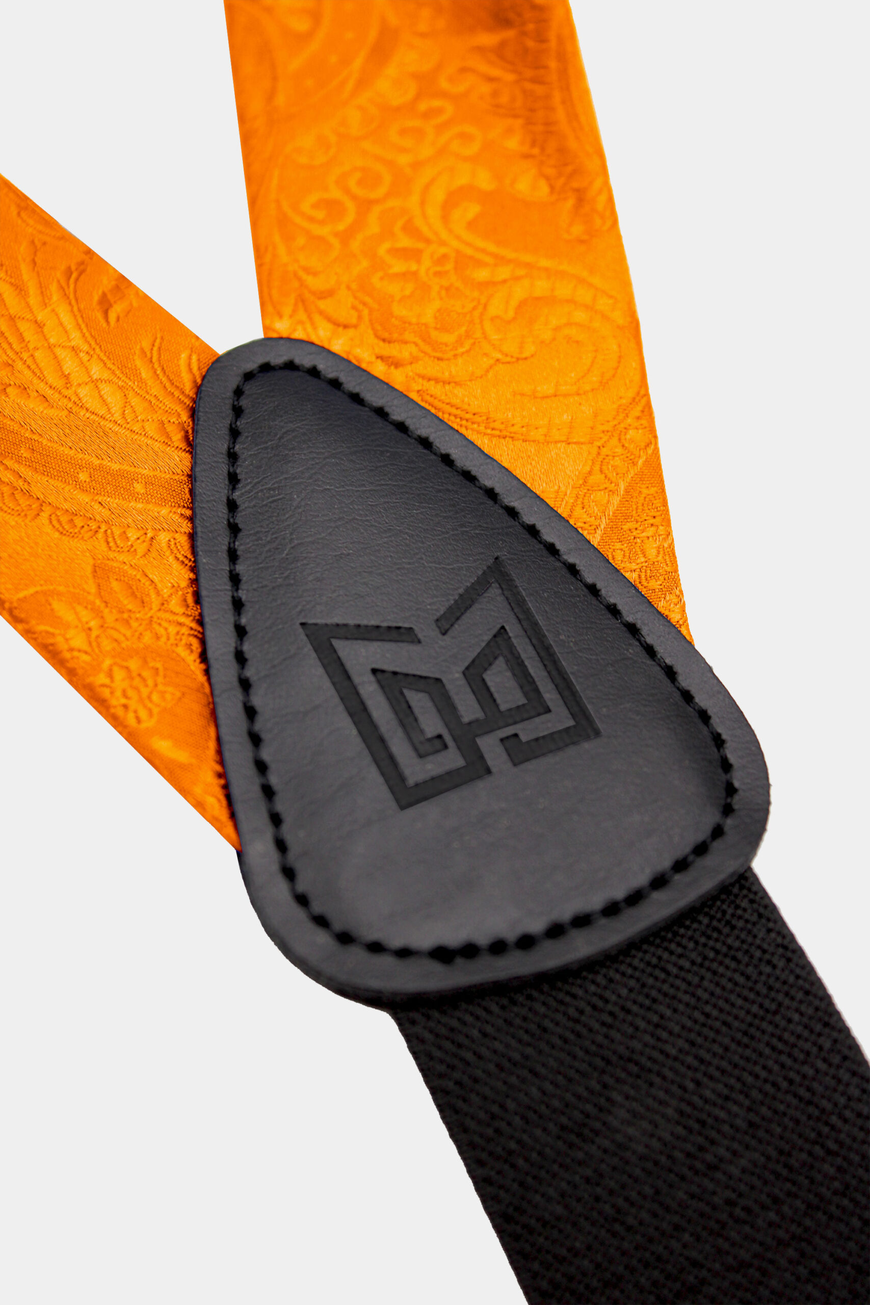 Up your style game without breaking the bank when you add this paisley orange bow tie and suspenders set to your formal wear collection.