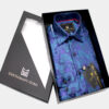 Up your wardrobe game without breaking the bank when you add this men’s paisley purple and turquoise shirt to your formal wear collection.