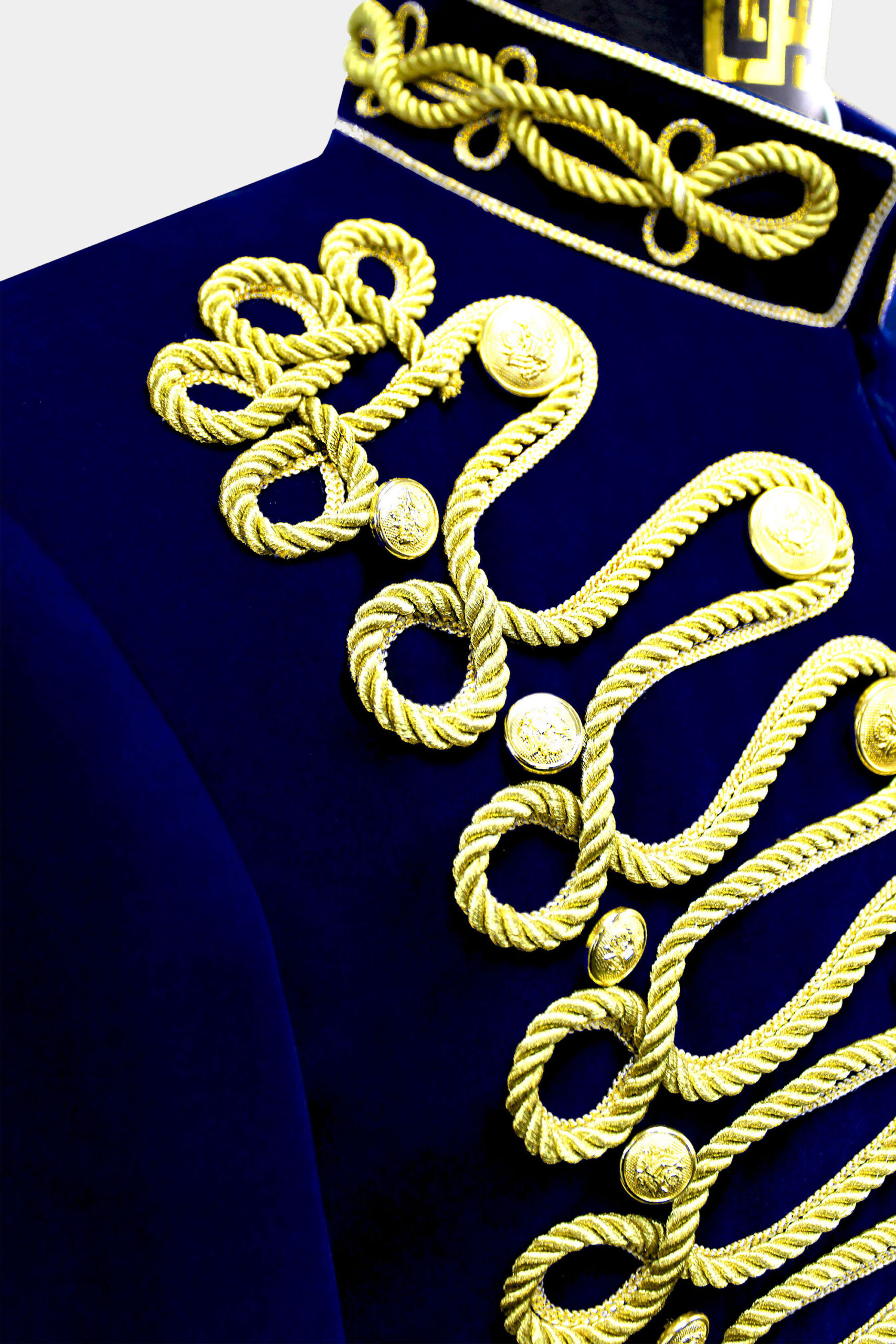 Wrap yourself in the luxury of royal blue velvet and gold embroidery with this blue and gold mandarin collar jacket – Handcrafted with premium quality royal blue velvet, which gives it a soft and smooth feel. In contrast, the mandarin collar imparts a highly sophisticated vibe. It features spectacular and extensive gold embroidery on the collar, sleeves, and body. The incredible detailing of these embellishments speaks volumes about the craftsmanship involved in creating this extraordinary outfit. Up your style game to the next level with this royal blue and gold mandarin collar jacket.
