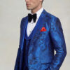 The Gentleman’s Guru Royal Blue Geisha Print Tuxedo – 3 Piece is a bold expression of modern elegance and artistic design. Created for the gentleman who values distinctive style and refined craftsmanship, this striking tuxedo combines vibrant color with sophisticated tailoring to produce an unforgettable formal look.