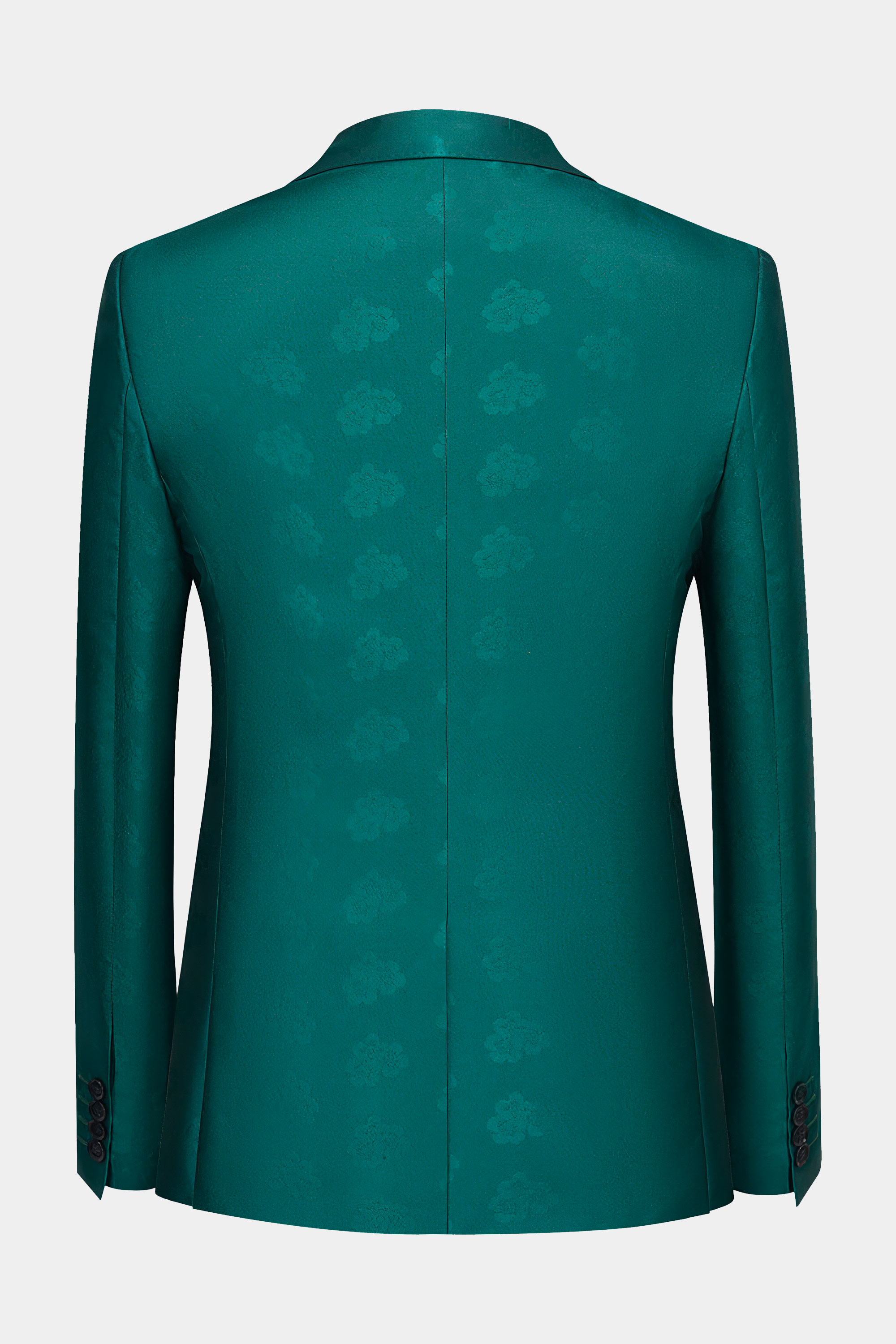 The fabric consists of a captivating teal-green floral pattern on a classic teal backdrop, adding a touch of natural allure to the suit. This unique and stylish design captures attention while reflecting your distinctive sense of style and appreciation for exquisite craftsmanship.